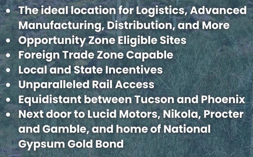 At the heart of Eloy’s success is our dedication to being a businessfriendly city. We work tirelessly to remove barriers to development, fostering a welcoming environment for entrepreneurs, developers, and businesses of all sizes. This spirit of collaboration is what makes Eloy a city where investments thrive, ideas flourish, and progress is made every day.