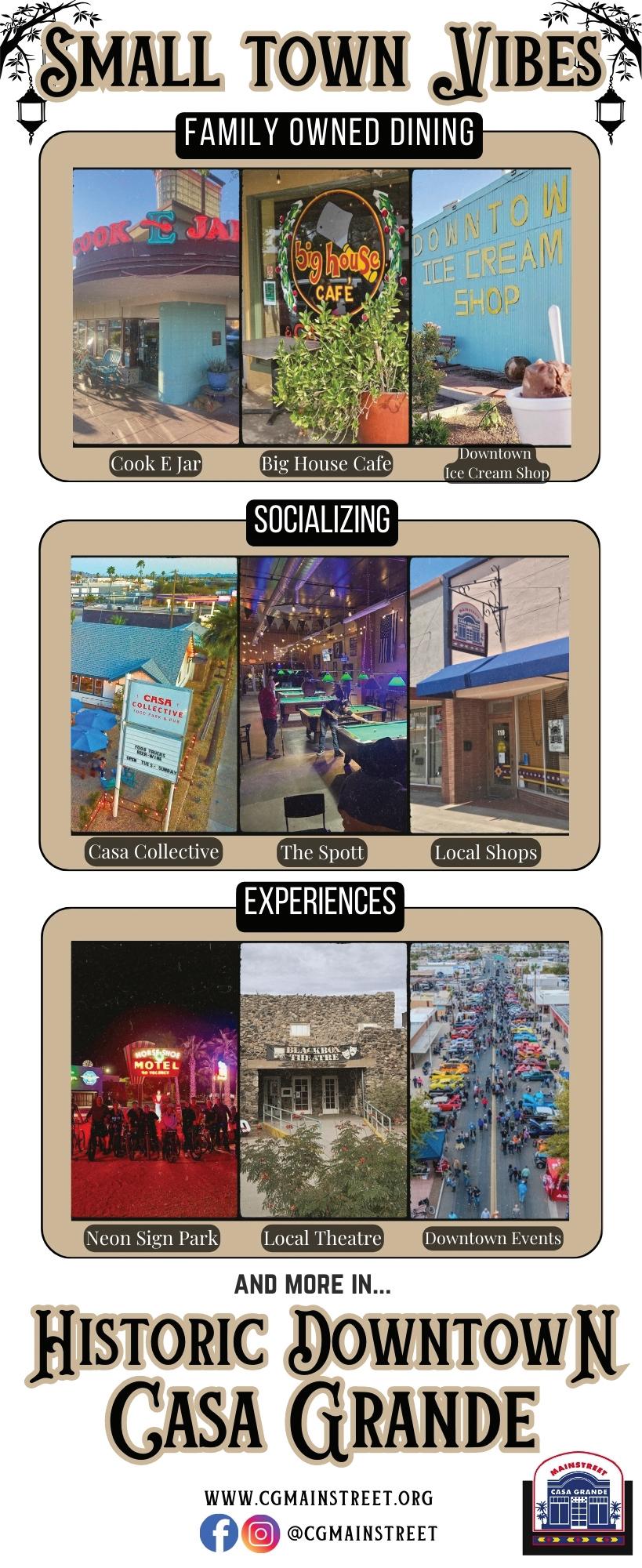• Embrace the nostalgia and charm of Casa Grande’s historic downtown, where it all began with the historic architecture of the city,