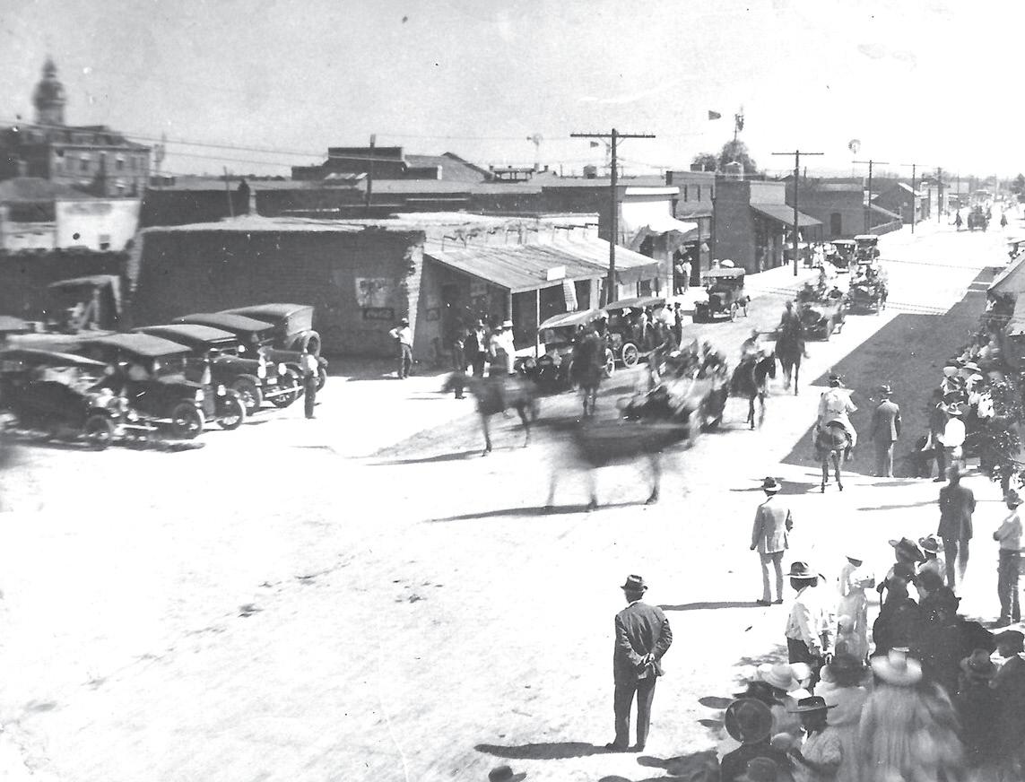 Homes and commercial buildings were constructed of sun-dried mud brick known as adobe and shaded by cottonwood trees growing along the small ditches of flowing water. The sounds of Mexican music could be heard on many evenings in this small desert oasis. Single men from Boston, New York, and Ohio found the señoritas who had been educated in Mexican convents very enchanting. Descendants of the resulting marriages still live in town. Eventually, eastern Victorian ladies ventured west to live on the frontier. Mrs. Estella Colton relates in her memoirs how horrified she was to learn that on hot summer nights, she was expected to sleep on a cot in the street clad only in her nightgown. Only a path down the center of the street was left for late bar patrons to make their way home.