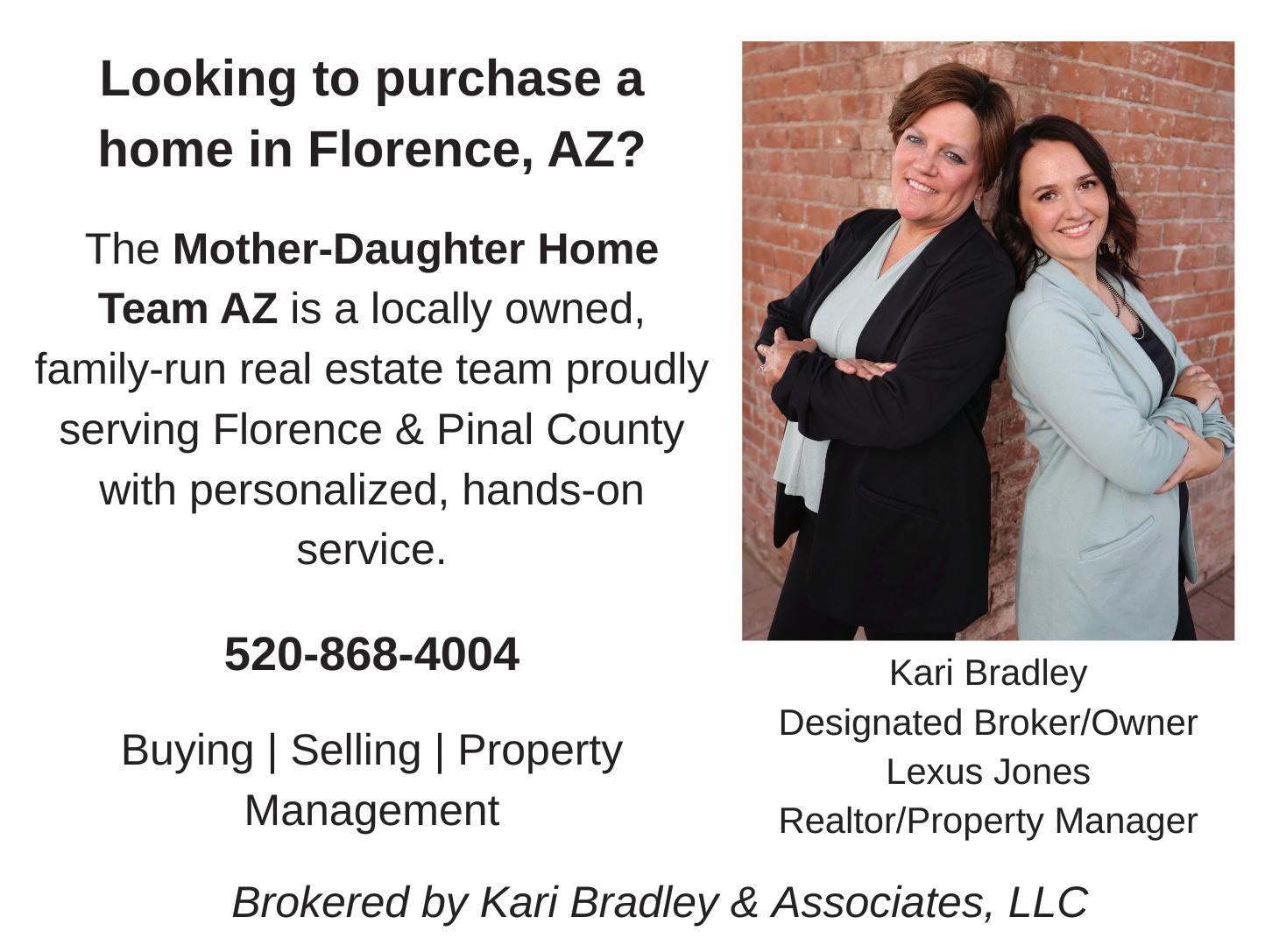 Welcome to Florence, Arizona! It is a joy to host you for the 40TH Annual Historic Home Tour – a remarkable milestone celebrating four decades of preserving, sharing, and honoring the heritage that makes our community so special.