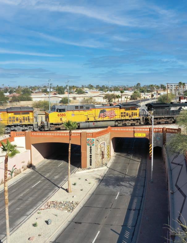 Present: Today, the railroad links Casa Grande, an inland port for shipping, to local, statewide, national and international destinations. The new murals on the railroad underpass, demonstrate the City’s ongoing beautification campaign.