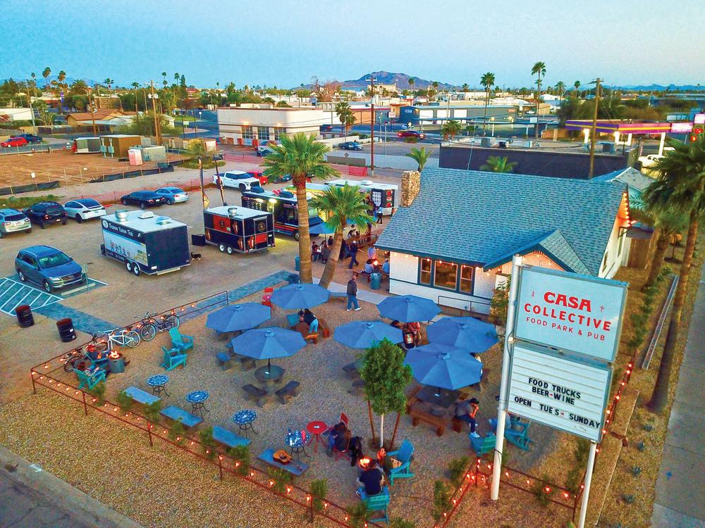 Casa Grande Neon Sign Park , 408 N. Sacaton St. in historic downtown. From dusk to 11:00 pm, stroll around the most original park which is populated by neon signs, plaques and pedestals; while enjoying Casa Grande’s sign history that uniquely tells the “story of us”. Be sure to visit the new, imaginative, neon windmill, crop duster and cattle public art piece. www.neonsignpark.com. If, after all that walking, you want to enjoy a delicious nosh and beverages and visit with friends, try the new Casa Collective Food Park & Pub at 323 W. 8th St., an indoor/outdoor dining experience of mobile restaurants focused on building community, supporting local cuisine and enjoying a casual, relaxed, family-friendly environment.