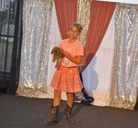 Above Left: Avery Kellerman’s theme was “Supportive Love For 4-H” and she escorted her pet bunny around the stage. Above Center: Jozilynn Stork shows off her theme wear: “Party in the USA.” Above Right: Mabry Rider’s theme wear was “She’s a runner, she’s a track star.”