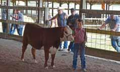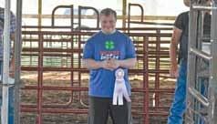 Left: Kendra Guetersloh shows off one of her prized cows during the 4-H show on June 12. Above Left: Lawson Kurtz is pictured with one of his pigs during the 4-H show. Above Right: Tucker Dearmond (foreground) and Isac Smith (background) wait while their cows are judged during the junior livestock show.