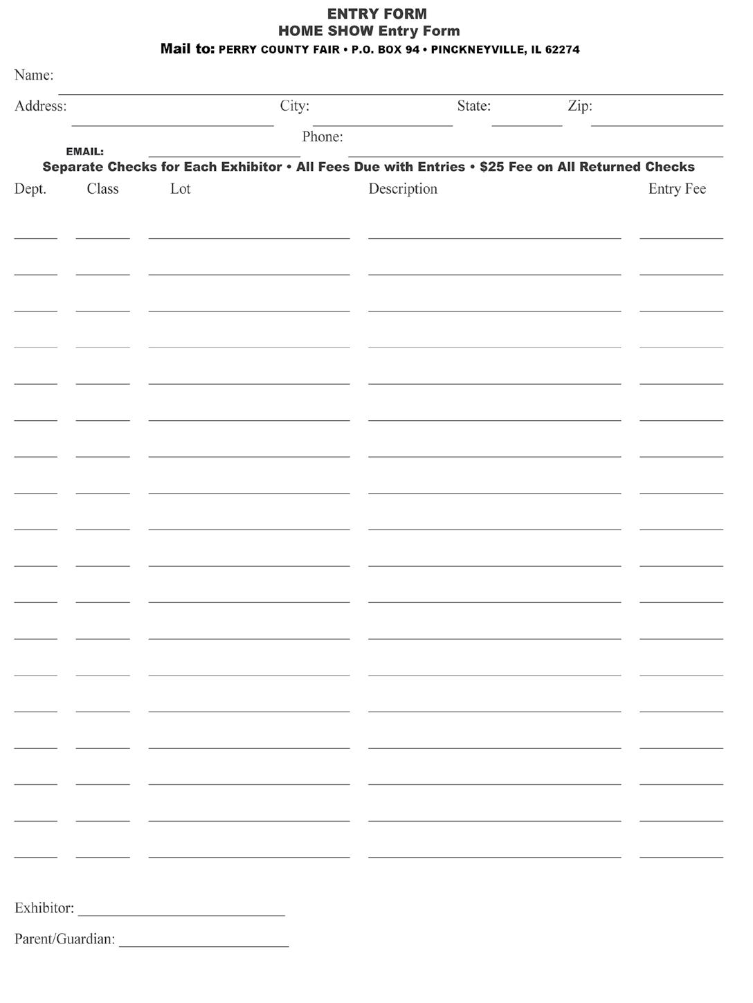 HOME SHOW ENTRIES DUE 2PM TO 6PM