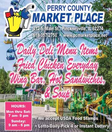 $1.00 off of any 1 item with this coupon Good for Tues. & Wed., June 11 & 12 Only. Paulette’s Food Stand Enjoy the 2024 Perry County Fair and all your favorite foods at Contact us by calling 618-542-5409 or online at perrycountyhousing.org Single & Family Apartments For Rent Perry County Housing Authority 120 South Walnut Street, Du Quoin, IL 62832