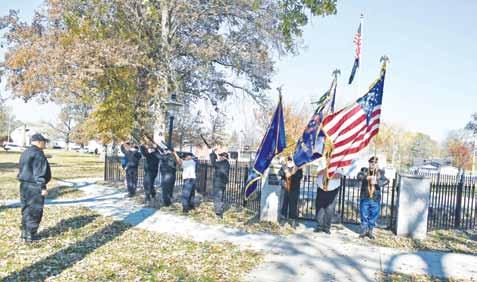 Above: The Veterans Day ceremony at Keyes Park last year is done in front of the memorial and shows the new wrout iron fencing around the memorial. Below Left: Veteran’s Memorial is shown before the newer fencing.