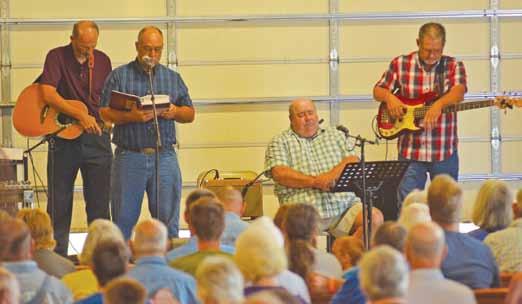 Left: Brothers and Others members Rob Mathis, Todd Rushing and Bob Priebe stand with ATA Chaplin Aaron Whitworth as he reads scriptures at last year’s worship service. The Sunday church and memorial services are set to take place on Sunday, August 20 at 8:00 a.m. Come join us for services.