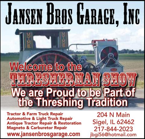 For general information, you can visit the ATA’s website at www. americanthresherman.com or call (618) 318-0745 before the show and (618) 357-6643 during the show.