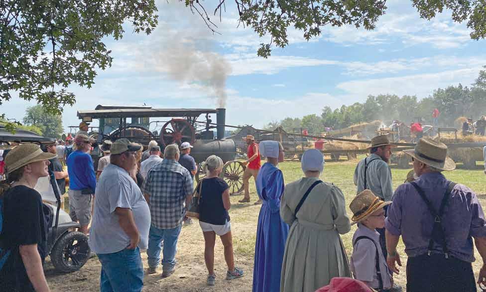 People gather to watch threshing machines during last August’s show at the Perry County Fairgrounds. The 2022 show featured Minneapolis-Moline, Ford & Fordson, Leader Tractor and Fairbanks Morse Engines.