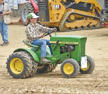 Left: A young boy drives a 1966 John Deere Model 110 during the Parade of Power on August 20 during the ATA’s August show. Above: Chris Jansen speaks with a driver during the Parade of Power at the Perry County Fairgrounds’ grandstand on August 20, 2022.