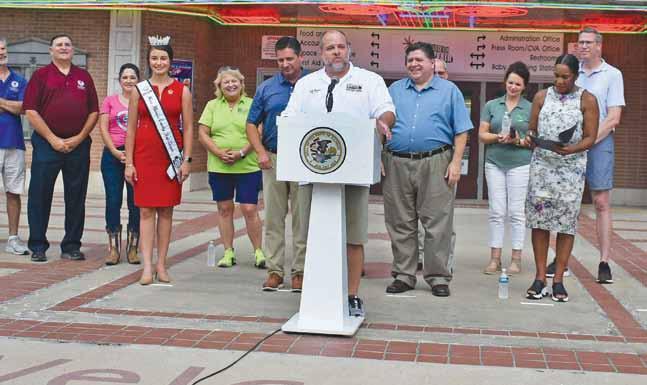 Left: Illinois Gov. J.B. Pritzker gives a statement during the ribbon cutting. Above: Du Quoin Mayor Josh Downs delivers remarks at the 2023 ceremony.