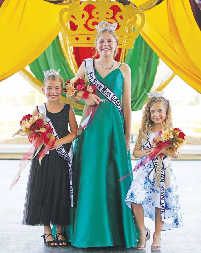 Above Left: Jozilynn Stork, age 12, is crowned this year’s Miss Pre-Teen Du Quoin State Fair Queen on the Du Quoin State Fair Grandstand Stage on August 20. Jozilynn is the daughter of Hannah & Joseph Stork. Jozilynn is from Tamaroa. Above Center: Roe Marks, age 9, is crowned this year’s Junior Miss Du Quoin State Fair Queen last year. Roe is the daughter of Shawn and Rachel Marks. Roe is from Du Quoin. Above Right: Ella Wilson, age 5, is crowned this year’s Little Miss Du Quoin State Fair Queen. The Du Quoin State Fair Pageant was held on August 20 at the Du Quoin State Fairgrounds Grandstand. Ella is the daughter of Casey & Tony Wilson. Ella is from Pinckneyville. Photos by Lylee Gibbs.
