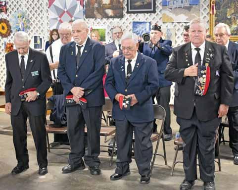 The Sparta VFW Post 2698 Honor Guard hangs their heads during a performance of “Taps.” They are seen below during the ceremony.