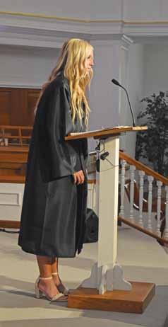Above Left: DMS Principal Denise Woodsides addresses the crowd. Above Center: Gannyn Funk delivers the welcoming address on behalf of the Class of 2024. Above Right: DMS Band Directors Award winner Beckett File.