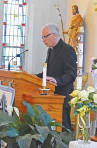 Father Carl Schrage delivers a prayer. Dennis Unverferth presents the graduating class of 2024.