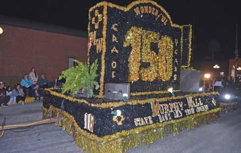 Above: Local Girl Scout members ride in a float decorated with the names of their cookie products. Right: Pictured is Pinckneyville Garden Club’s Fall Wonders float. Below: Pictured is St. Paul United Church of Christ’s 2024 Mardi Gras float.