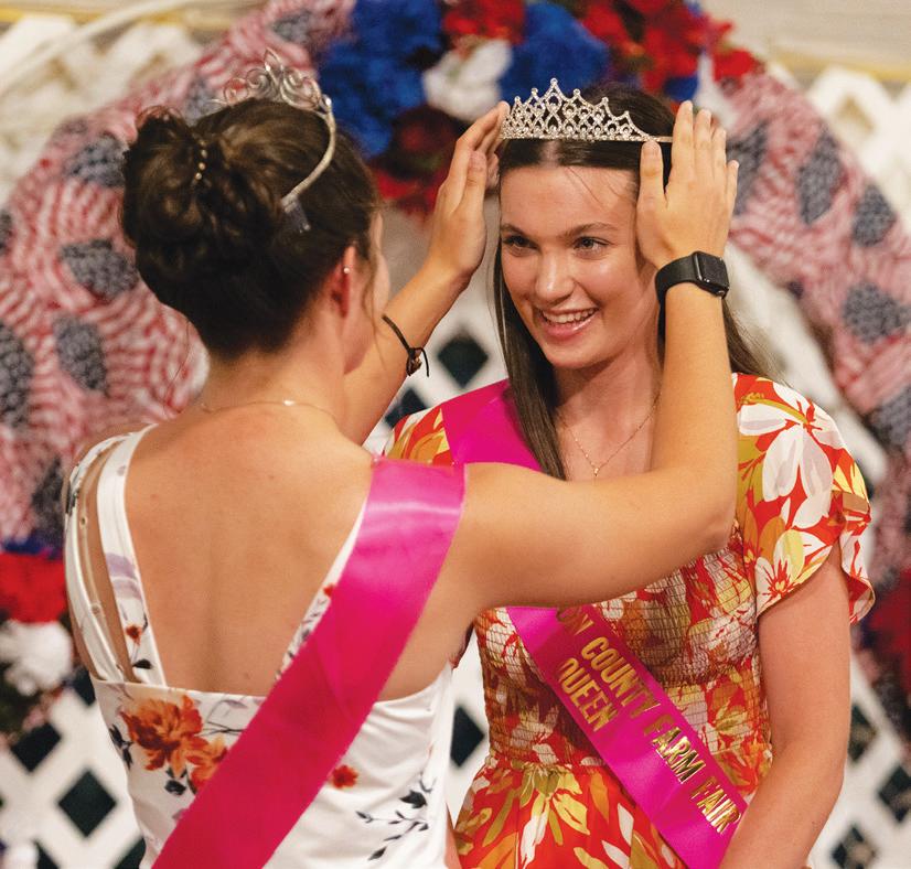 In addition, the queen is eligible to compete in the State Agricultural Contest in which the winner represents the state at all county farm fair events. The outgoing queen returns each year to crown her successor. Each queen is expected to complete a “give back” project for the fair. This can be in the form of visiting schools to promote the fair in the spring, or a project that the queen comes up with and runs by the contest director, Jamie Padulese, who is a former queen herself.