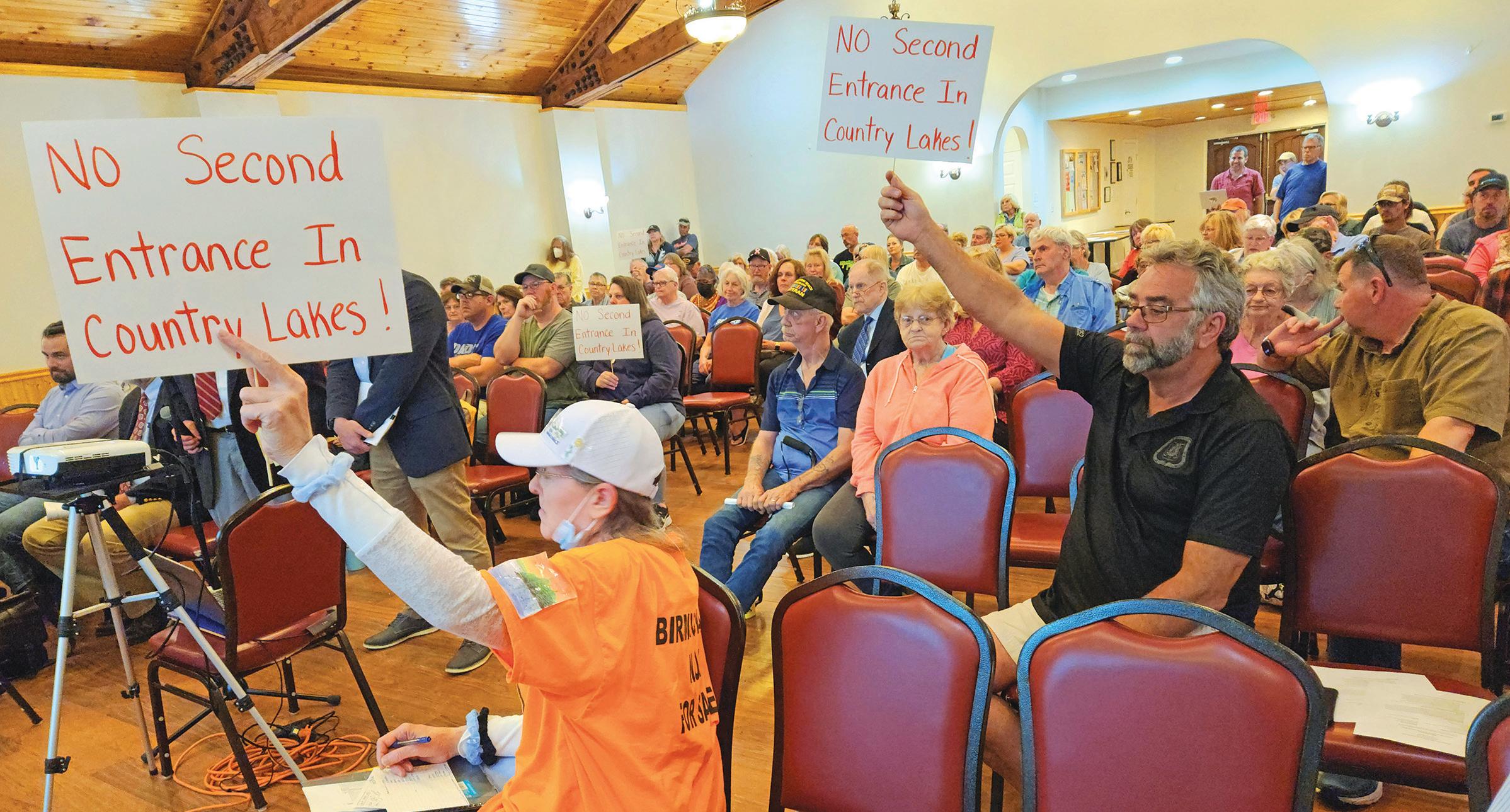 Residents of the Country Lakes development who attended the latest meeting of the Pemberton Township Planning Board with homemade signs objecting to