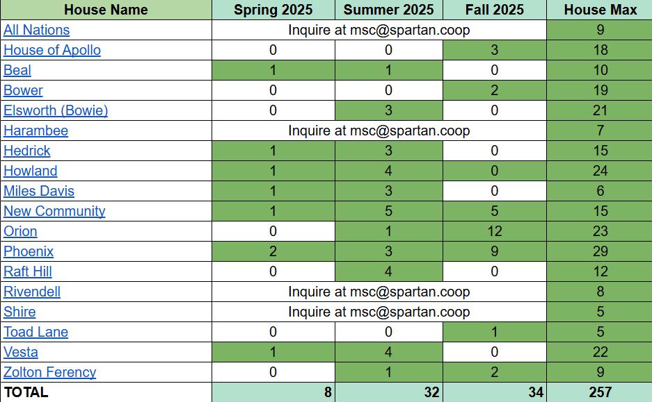 ◆ We still have some availability for this fall for several houses Promote your house by making a fair-housing compliant flyer and spreading the word on your socials! Have your membership officers reach out to AJ for further assistance.