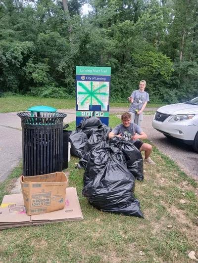 ➔ The Rivertrail cleanup happened on July 26th at 1 pm on the South Clippert trailhead of the Lansing River Trail The group formed to collect trash around the area and collected over 5 full bags of trash!