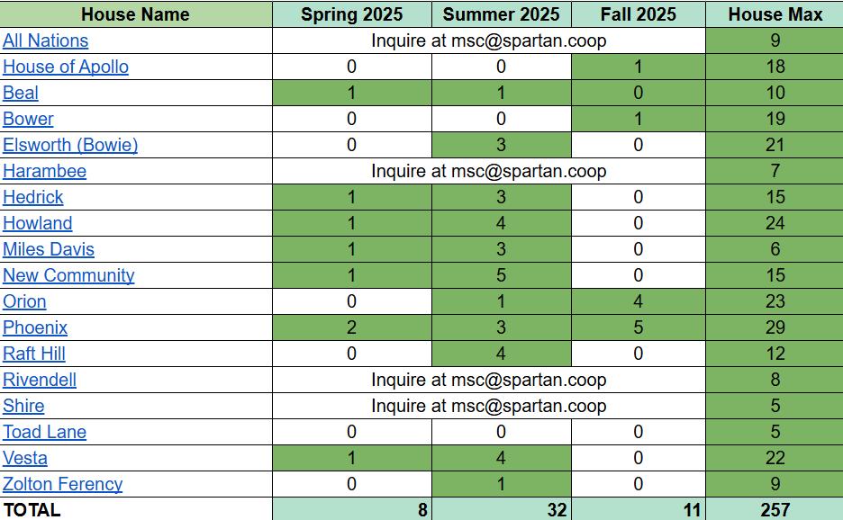 Maintenance Coordinator (Zach): maintenance@spartan.coop
