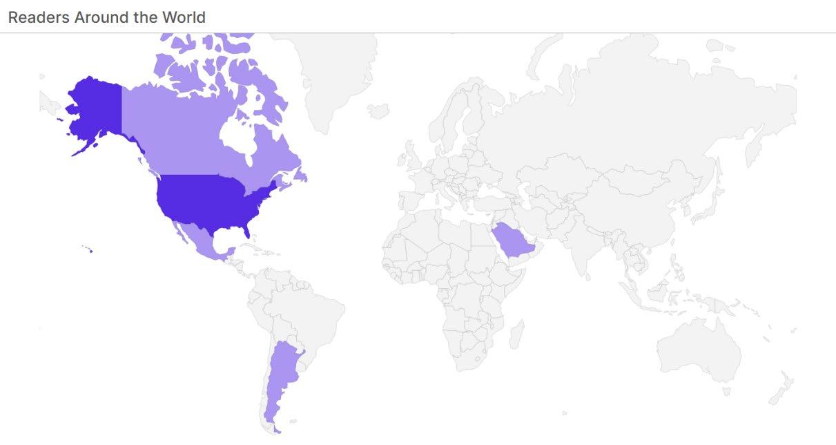Our new newsleter has sta�s�cs that will show us how many people and in how many countries we have reached each month. Wouldn’t it be cool if we all shared our link and lit up the WORLD? One could say