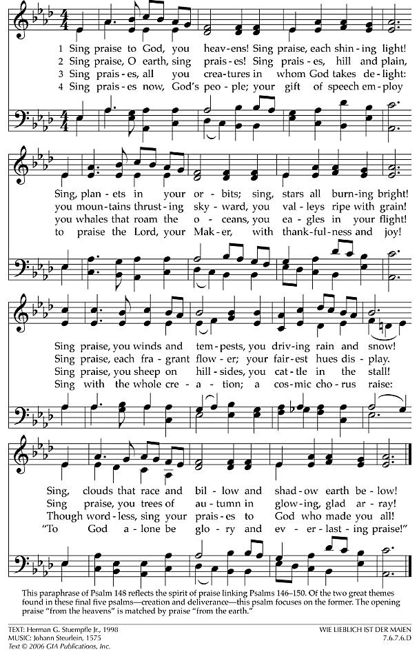 Many: Thanks be to God. † HYMN Sing Praise to God, You Heavens!