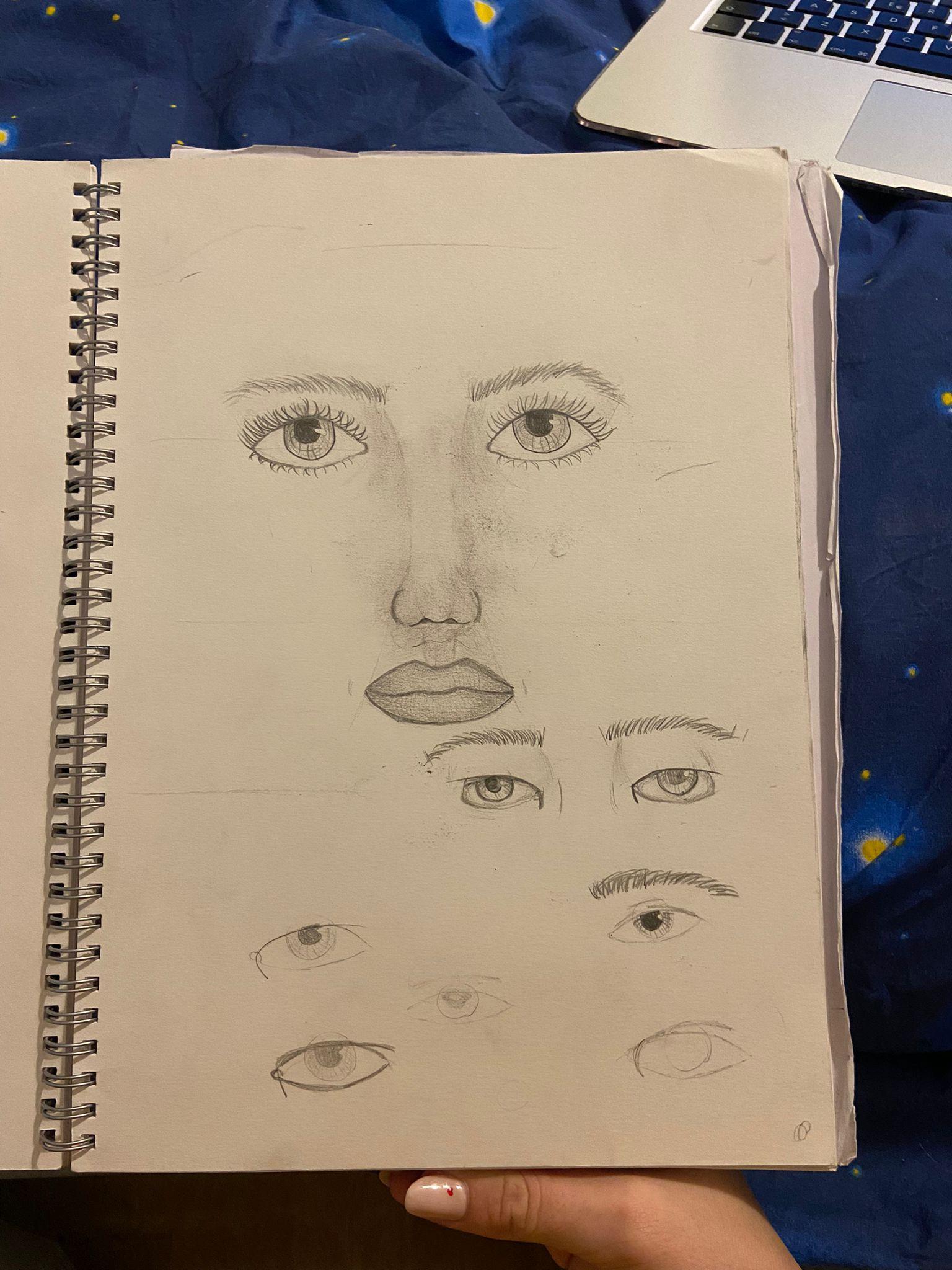 AspectsofmyartworkthatIlike,varyintheir specificity.WhenlookingattheartworkIlikethe definitionofthebonestructureintheface,and theeyes.Thebonestructureaddstotherealism ofthepaintingasitcreatesarealisticdepictionof ahumanbeing,asthelayersgofrombonesto musclesandlast,skin.Theeyes,theeyes,they givemeafeelingofrelatability,theyfeelvery realandIamveryhappythatIcouldachieve that,eventhoughIbelieveitwasthroughsheer luck.