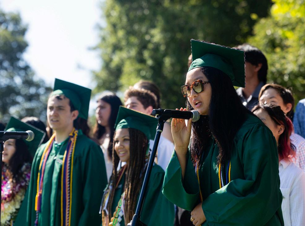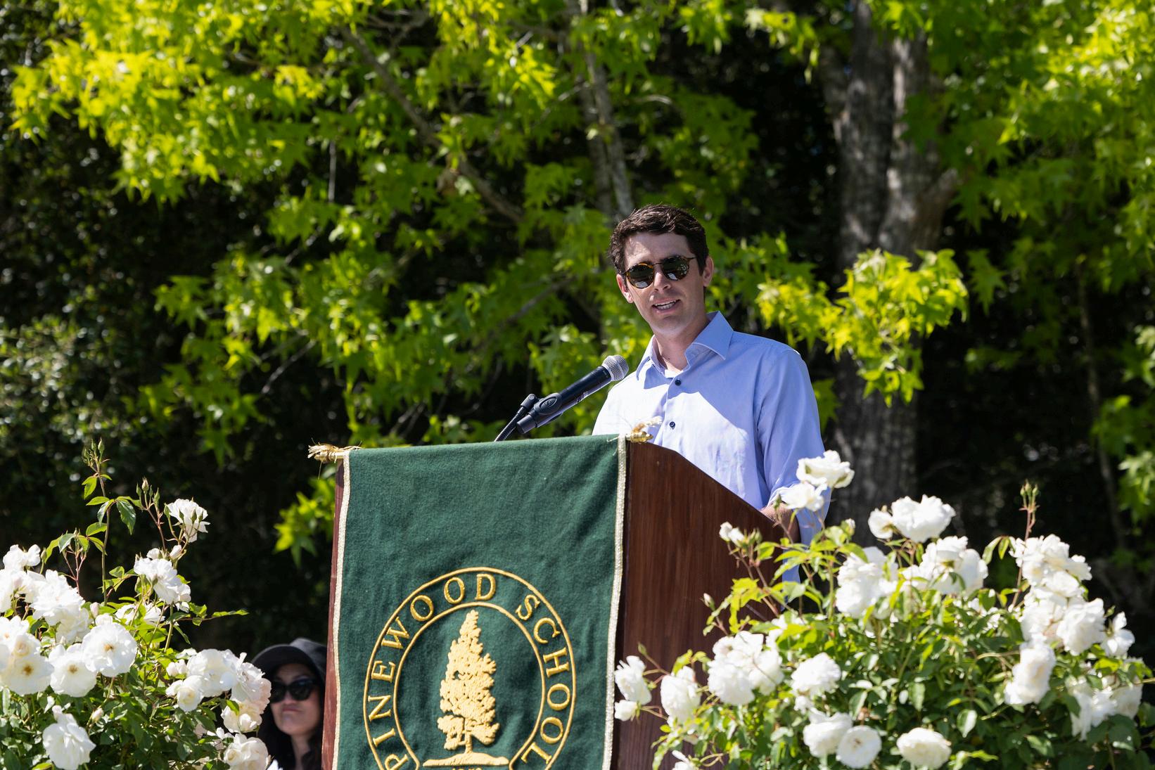 The program featured musical performances by the Treble Choir, Take Note, and Pinewood Singers, directed by Katie Linza. Speeches were given by President and Head of School Scott Riches, Head of Upper Campus Gabriel Lemmon, ASB President Ethan R., Salutatorian Sophia Y , and Valedictorian Meghana S. The event's special guest speaker was Scott Edwards '08, Founder and Chief Executive Officer of Drop Water. Diplomas were presented by Class Advisors Bill Bates and Stephanie Fugita
