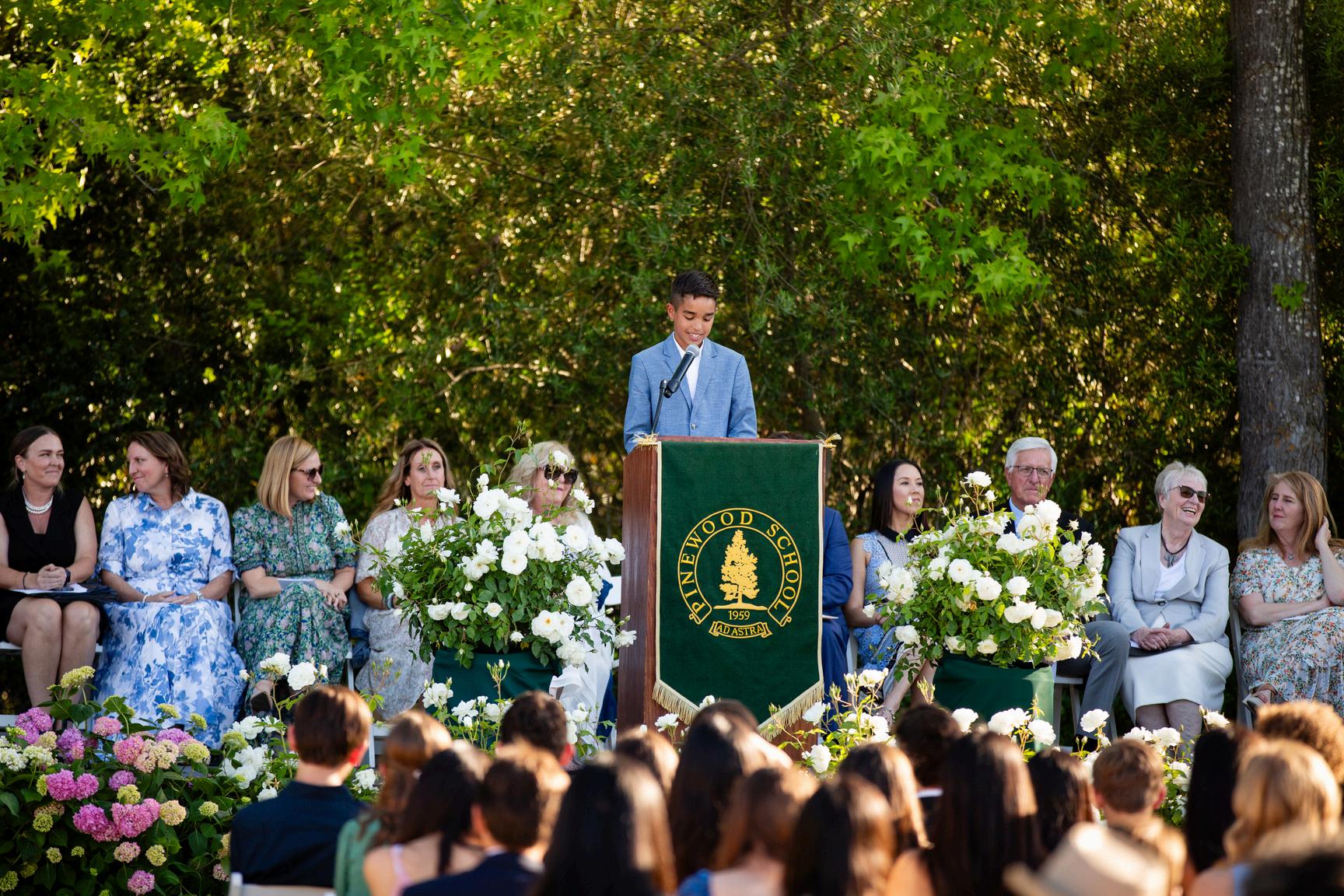 Ethan R. '24, ASB President, delivers remarks during Pinewood’s 40th graduation ceremony, which took place on May 30, 2024.