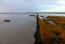 Südlich des Dammes erfolgte eine starke Aufschlickung und es entstand neues Vorland, so dass die Hallig zu einer Halbinsel geworden ist.