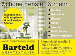 5 02/2023 Frischer Wind KNUTZEN WOHNEN | HAMBURGER STR. 109 | 25746 HEIDE TELEFON 0481 / 68 010 | WWW.KNUTZEN.DE BODENBELÄGE VON KNUTZEN Farb- und Musterbeispiel SIE STEHEN! WIR HABEN, WORAUF Praxis für Ergound Physiotherapie Anmeldezeiten: Mo.: 10:00-12:30 & 14:00-17:00 Uhr Di.: 8:30-12:30 & 13:00-17:00 Uhr Mi.: 8:30-12:30 Uhr Do.: 8:30-12:30 & 13:00-18:00 Uhr Fr.: 8:30-12:30 Uhr Therapieteam Berliner Hof Berliner Straße 46 • Heide 0481 / 788 93 11