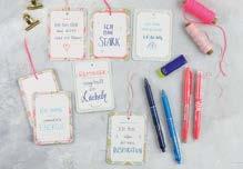 Selbst gestaltete Mo�va�onskarten helfen, eine posi�ve innere Haltung anzunehmen. Einfach Karten mit dem Lieblingsspruch beschri�en und verzieren. Mit S��en wie dem Frixion Clicker von Pilot lassen sich hierbei Fehler ausbessern oder ganze Sprüche nach einer Weile ersetzen. Die Kanten des weißen Papiers einfach mit einem S�� wie dem Frixion Light Marker von Pilot einfärben.
