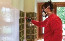 Bunte Fliesen mit grellen Blumenmustern und vergilbten Fugenstreifen – so sieht es aus, das dringend renovierungsbedür�ige 70er-JahreBad. Die Fliesen herausreißen und neu verfliesen ist teuer und aufwendig. Sta�dessen kann man die Fliesen mit einem speziellen Fliesenlack überstreichen. Die Umsetzung ist einfach und wesentlich güns�ger. Anleitungen und Materialien: www.adler-lacke.com.