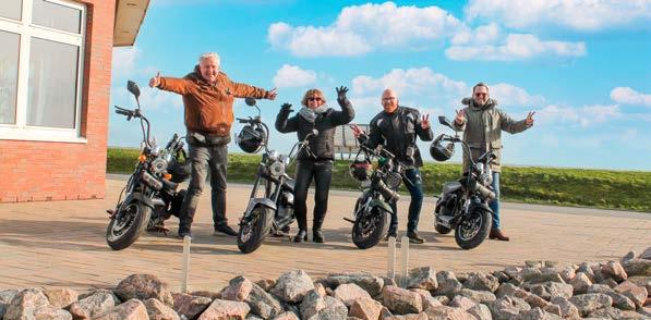 Den Auftakt macht eine Open-Air-Party am Strand mit Live-Musik von der Band „Crank it up“ aus Hamburg. Ein Tag zur freien Verfügung schließt sich an, an dem die Nordseeküste inklusive des Hafens und der Familienlagune in Büsum erkundet werden kann. In der 360° Bar will man gemeinsam den Abend ausklingen lassen. Höhepunkt der vier tollen Tage ist ein E-Chopper-Korso, der die Teilnehmer von Büsumer Deichhausen über Büsum, Stinteck und Warwerort bis in den Meldorfer Hafen führt.