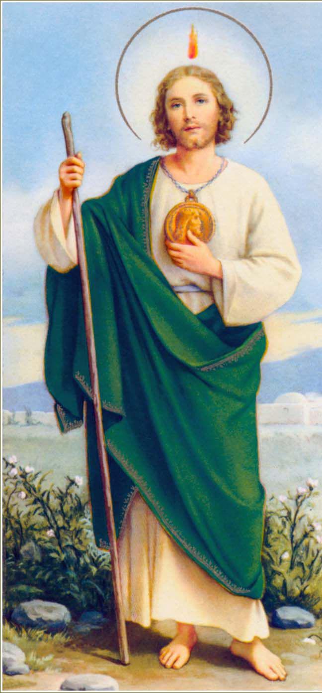 Santo Apóstol San Judas, fiel siervo y amigo de Jesús, la iglesia te honra e invoca universalmente, como el patrón de los casos difíciles y desesperados. Ruega por mí, estoy sólo y sin ayuda. Te imploro hagas uso del privilegio especial que se te ha concedido, de socorrer pronto y visiblemente cuando casi se ha perdido toda esperanza. Ven en mi ayuda en esta gran necesidad, para que pueda recibir consuelo y socorro del cielo en todas mis necesidades, tribulaciones y sufrimientos, parwticularmente (haga aquí su petición), y para que pueda alabar a Dios contigo y con todos los elegidos por siempre. Te doy las gracias glorioso San Judas, y prometo nunca olvidarme de este gran favor, honrarte siempre como mi patrono especial y poderoso y, con agradecimiento hacer todo lo que pueda para fomentar tu devoción. Amén.