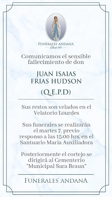 Agradezco infinitamente a familiares y amigos que nos acompañaron en la despedida de mi amado hijo, don Luis Alberto García Paredes (Q.E.P.D.). Su funeral se realizó ayer domingo 5 en el Cementerio Parque Cruz de Froward. Participa: Su mamá Guillermina Paredes Gallegos y hermanos.