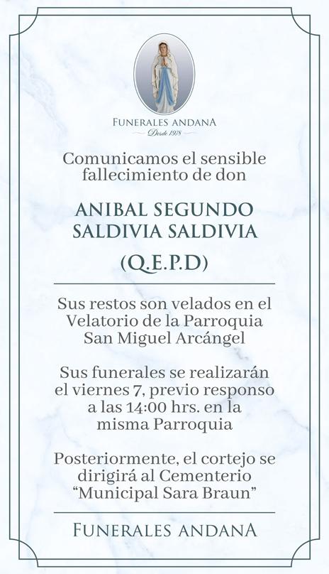 OBITUARIO: HÉCTOR GUILLERMO BARRERA ALEGRÍA ANIBAL SEGUNDO SALDIVIA SALDIVIA.