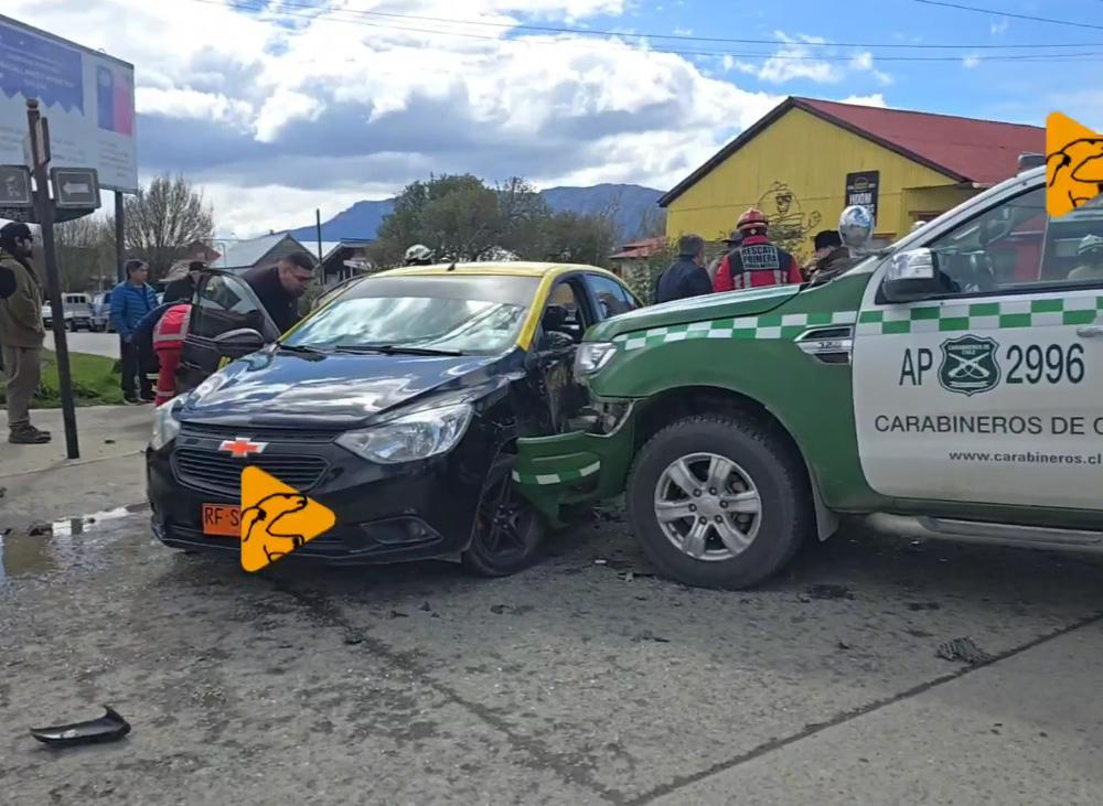 Un fuerte accidente de tránsito se registró en la jornada de ayer en la capital de la Provincia de Última Esperanza, luego que un carro policial de la Segunda Comisaría de Carabineros colisionara violentamente contra un taxi básico en la esquina de calle Bulnes con Juan Mclean.