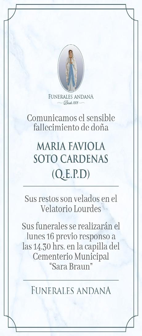 OBITUARIO: MARíA fAvIOlA sOTO cARdenAs.