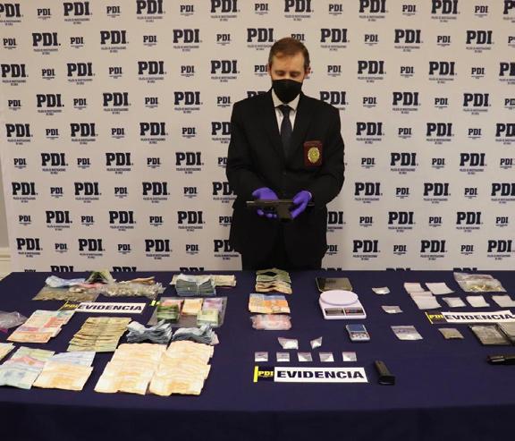 La PDI mostró lo incautado en los domicilios que fueron allanados durante la jornada del viernes.