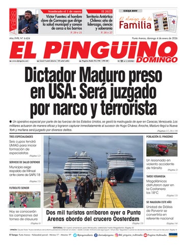@pinguinodiario El Tiempo: Punta Arenas - Chubascos dispersos - Mínima 3º - Máxima 7º diarioelpinguino @el_pinguino_multimedia Pingüino Multimedia EDITORIAL: El bullying en el día a día (Página 8) OPINIÓN: Claudio Flores: “Magallanes en la UTI” / Adolfo Canales: El costo de contratar / Pamela Troncoso: Parto respetado: un desafío iniciado” (Página 9)