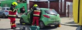 El golpe fue recibido directamente en el lado del conductor del Mazda, provocando una severa deformidad en la carrocería. La situación se complicó dado que el chofer del vehículo impactado utiliza prótesis en sus piernas, lo que limitaba su movilidad y hacía imposible su salida por medios propios.