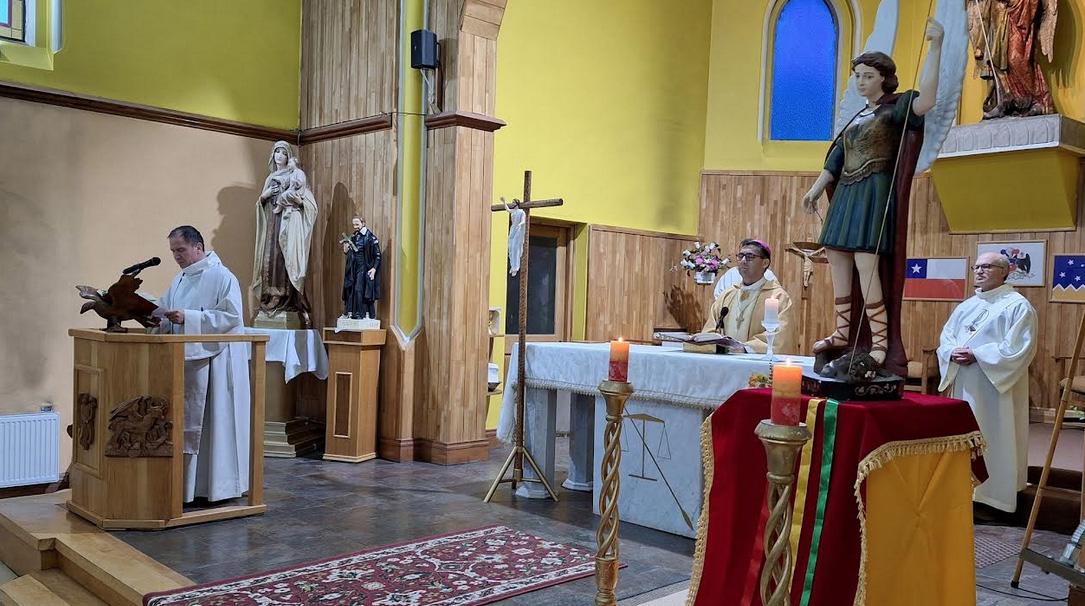 El lunes 29 de septiembre con gran alegría se celebró la fiesta patronal de la Parroquia San Miguel Arcángel, recordando que “no estamos solos en nuestro camino de fe”: Dios ha puesto a nuestro lado a estos “mensajeros” de Dios para “servir, proteger y guiar”. La eucaristía fue presidida por el Padre Obispo Oscar, junto al párroco P. Pablo Vargas y los diáconos Luis y Juan. Después de la eucaristía hubo un compartir fraterno en el salón parroquial Marta Díaz Ravena (Facebook Parroquia San Miguel Arcángel).