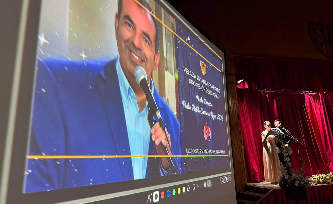 El jueves 13 de noviembre, la comunidad educativa pastoral del Liceo Salesiano Mons. Fagnano celebró con profunda alegría, emoción y gratitud los 25 años de vida religiosa del director de la Obra Salesiana en Magallanes, P. Pedro Carrera Reyes SDB, en una velada especialmente preparada para reconocer su testimonio y entrega. Uno de los instantes más significativos fue el mensaje del propio P. Pedro, quien compartió con humildad cómo ha vivido estos 25 años de vida religiosa. Agradeció a Dios por haberlo llamado —“a un joven normal”, según expresó— a una misión que nunca imaginó, y reconoció que su vocación se ha construido día a día gracias al acompañamiento de tantas personas que han sido parte de su camino. Recordó además la fragilidad y belleza de la vocación, evocando el texto paulino “Llevamos este tesoro en vasijas de barro”, e invitó a la comunidad a sostener en oración a quienes consagran su vida a Dios. En este espíritu de gratitud, la comunidad educativa elevó sus oraciones para que Dios y María Auxiliadora continúen fortaleciendo su corazón de pastor y misionero, acompañándolo en este camino de servicio que mantiene con la misma pasión del primer día (FUENTE: COMUNICACIONES LSMF).