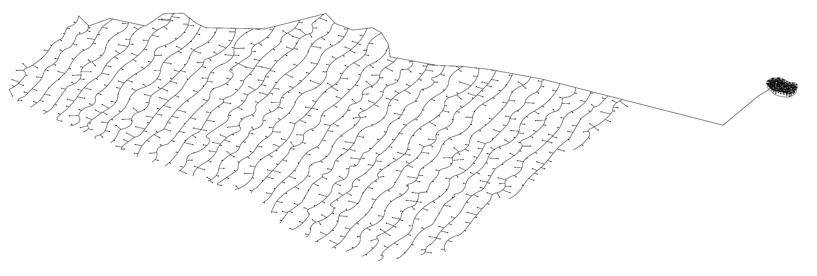 Na golom otoku Pagu, krajolika kao Mjesec, godinama se razvija posebna vegetacija, samonikli maslinik. To područje, Lun, kao oaza u pustinji daje dašak života otoku. Odnos prema tisućljetnoj maslini je kao odnos prema životu i prostoru. One rastu po tajnom planu bure i soli, a na tom prostoru je konstantno prisutna borba elementarnih sila i prirode. Značenje ovaca na ovom prostoru je veliko, jer sve dok su one slobodno puštene, pojesti će suhe travke i tako spriječiti moguće nastajanje požara u masliniku. Uz to, djelovale su i na posebno oblikovanje suhozida, na dodatak zadnjeg sloja koji se naziva ozub koji onemogućava ovcama preskakanje iz jednog dijela u drugi. Suhozidi koji osim što su nastali krčenjem kamenog tla, služe kontroli kretanja. Drugi naziv za stabla maslina je lunjski stupi, u čemu se već može povući paralela s arhitekturom. Osim vidljivog svijeta krošnji, u kamenoj stijeni, tajnovitosti i mraku postoji čitava mreža isprepletenog korijenja koje može biti i do tri puta veće od vidljivog dijela masline. Zbog erozivnog tla, kiša samo prođe kroz njega i voda se teško zadržava u toj zoni. To je prvi i osnovni problem maslinika. Vrt se može doimati kao grad maslina, u doslovnom značenju zbog problema u vlasništvu ovog područja. Svaka maslina je poput katastarske čestice, sama za sebe na površini koja vrlo vjerojatno pripada drugom vlasniku ili je u vlasništvu Republike Hrvatske. Spojem ta dva problema rađa se ideja projekta, odnosno pitanje na koji način se može sustavno riješiti navodnjavanje cijelog maslinika, s neke treće lokacije izvan maslinika. Istraživanjem i obradom podataka s DHMZ-a, provedena je računica prosječne količine oborina od 2014. godine na području Luna. S obzirom na to da masline trebaju veću količinu vode od travnja do rujna, tada im je najpotrebnije navodnjavanje. Kišnica bi se skupljala cijelu godinu i koristila po potrebi i skladu s periodom godine. Proučavanjem broja maslina, padalina, zalijevanja i površine napravljen je izračun koliko velika cisterna je potrebna, odnosno kolika bi trebala biti površina krova da bi se skupilo dovoljno vode. Izbjegavanjem velikog kopanja zbog kamenog tla, umjesto stvaranja 1 velike podzemne cisterne, spaja se funkcija cisterne i nosive konstrukcije krova. 56 cisterni oblikovano je poput lijevka, spojene međusobno i na podzemnu glavnu. Zajedno funkcioniraju kao spojene posude, tako da im je vodostaj uvijek jednak. Kružnim spajanjem cisterni označava se prostor, a samo njihovim postavom stvorena je nevidljiva granica. Takvim formacijama dobivene su različite površine u odnosnu na različit broj cisterni. One se međusobno mogu spajati na 2 načina: preko jedne cisterne ili preko dvije. Spajanjem formacija jednom cisternom dobiveni prostori se odbijaju, svaki funkcionira za sebe. Spajanjem formacija putem 2 cisterne prostori se počinju više povezivati i djelovati kao cjelina. Spojem formacija različitih površina i broja cisterni dobivena je struktura prostora, porozna poput spužve, a izgledom slična paškoj čipki. Prema geometriji cisterni, podijeljena je geometrija ljevkastog krova. Voronoi dijagram je podjela ravnine na područja prema zadanom skupa objekata. U najjednostavnijem slučaju, objekti su točke u ravnini koje se nazivaju sjemenke. Za svako sjeme dobiva se odgovarajuća regija, nazvana Voronoi stanica, koja se sastoji od svih točaka ravnine bliže tom sjemenu nego bilo kojoj drugoj. Primjenom Voronoi dijagrama na cisterne, dobivena je podjela krova. Krov sa stupovima, koji poput nadstrešnice obuhvaća prostor i postaje stalna arhitektura. Ono što se događa unutar volumena podložno je promjenama kroz vrijeme. Glavna konstrukcija predstavlja okvir koji ostaje, bez obzira postoji li potreba za prostorom ispod. U trenutnoj organizaciji prostora koja se može podijeliti na edukaciju, proizvodnju i turizam korištenje kroz godinu je periodično postavljeno. Svaka od skupina može funkcionirati zasebno ili istovremeno. Ovdje postavljena arhitektura ne smije zasjeniti masline, samo doprinijeti njihovoj veličanstvenosti i biti u jednakom odnosu prema 3 glavna aktera: maslini, čovjeku i ovci. Ona je poimana kao sadržaj koji upotpunjuje i održava maslinik na životu, a prostorni odnos služeni i služeći je odnos masline i arhitekture. Na prvu pomisao industrijska kuća, kuća vode je zapravo hipostilna dvorana silosa. Kada je količina vode ograničena i tlo je erozivno, najbolji sistem navodnjavanja je drip sistem, odnosno kap po kap. Iz masivne spužve pune vode izlazi tanki splet cjevčica, poput paukove mreže pričvršćene o kamen. Oko svake masline postavljen je prsten koji na sebi ima nekoliko kružnih otvora kroz koje kaplje voda. Bila slučajnost ili ne, obilježje kružnog slaganja cisterni i kružnih otvora na prstenu drip sustava ponaša se kao fraktal, korištenjem istog principa velikog i malog mjerila.