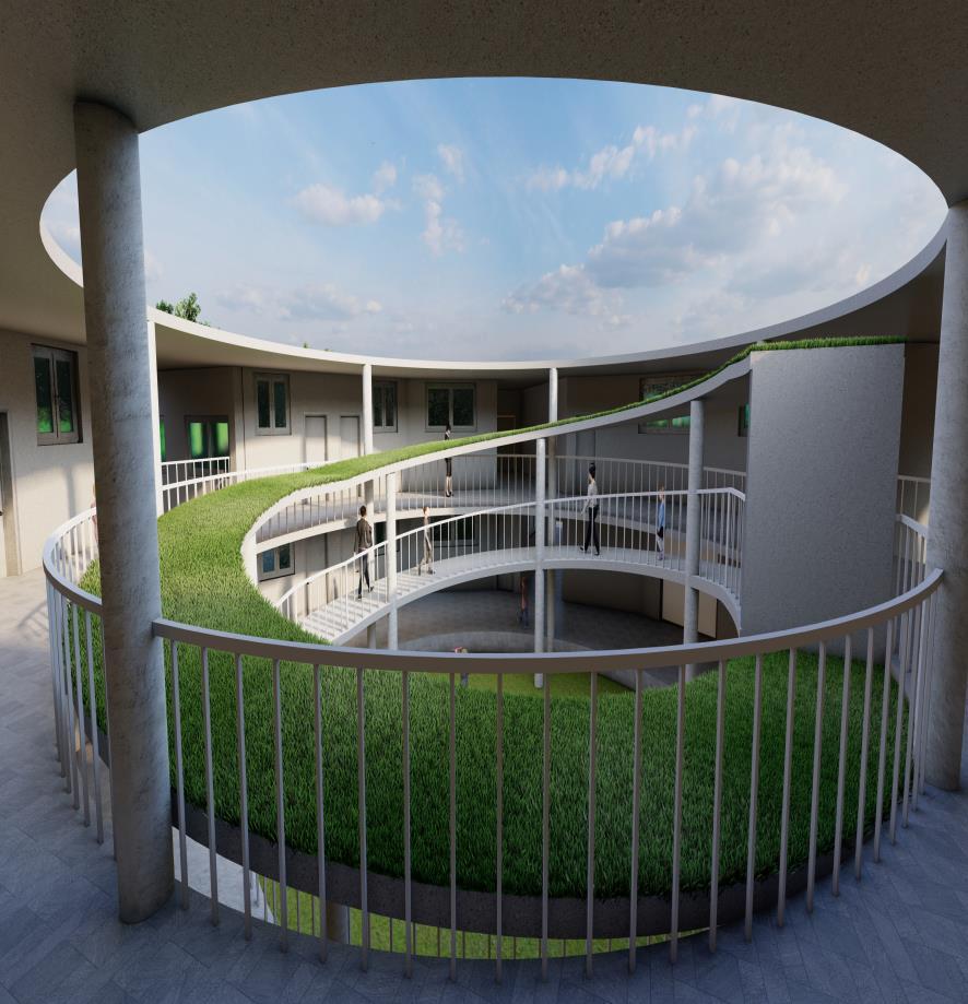 Roof of the auditorium is act as a shell it strengthen the performance as it performs a major role in acoustics. Inspired by the timeless elegance and resilience of the tortoise shell, the auditorium design embodies the harmony between nature and architecture.