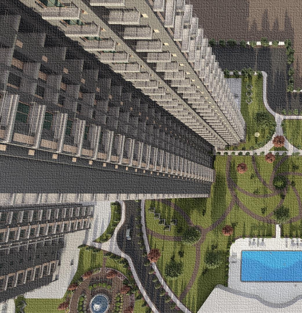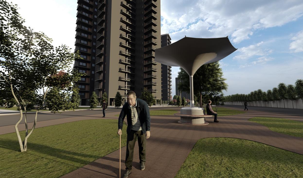 CREATING GREEN AREAS AROUND THE TOWERS.