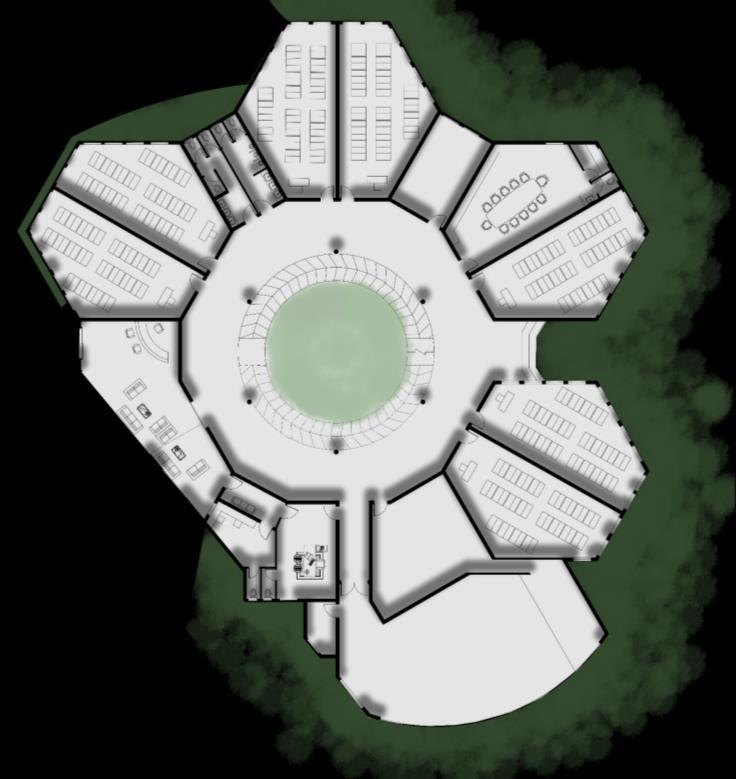 Form of the building is inspired from the hexagonal patterns of a honey comb.